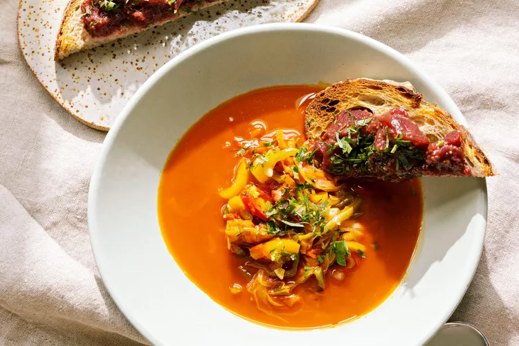 Oliaigua (Menorcan Vegetable Soup) with Fig Jam–Topped Toast