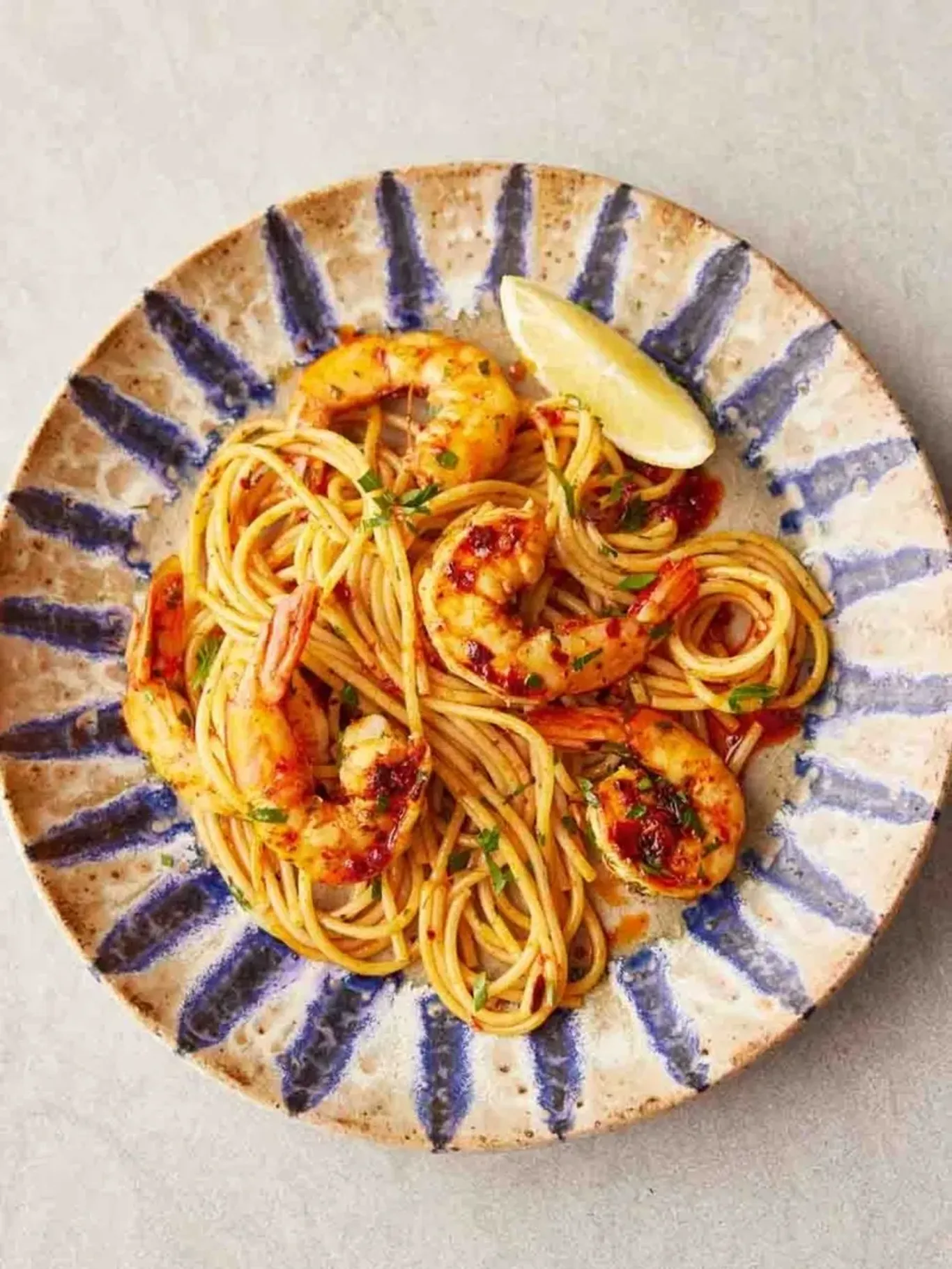 Tunisians are one of the biggest pasta eaters on the planet and they have a whole load of their own pasta shapes and techniques. Harissa really amplifies the sweetness of the prawns here – delicious! Ingredients 150g dried spaghetti 8 large raw shell-on king prawns, from sustainable sources 2 teaspoons rose harissa ½ a bunch …