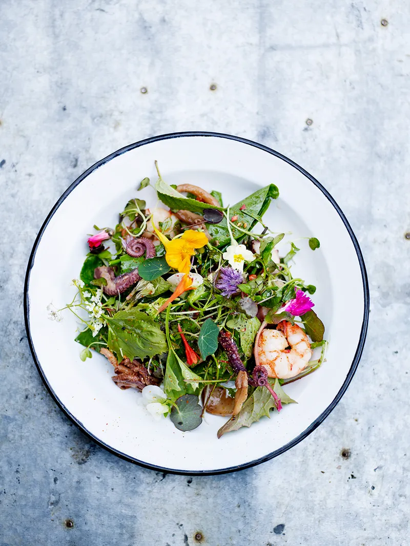 - Plate up with the scallops and black pudding, drizzle lightly with extra virgin olive oil, and sprinkle over the crispy mint.