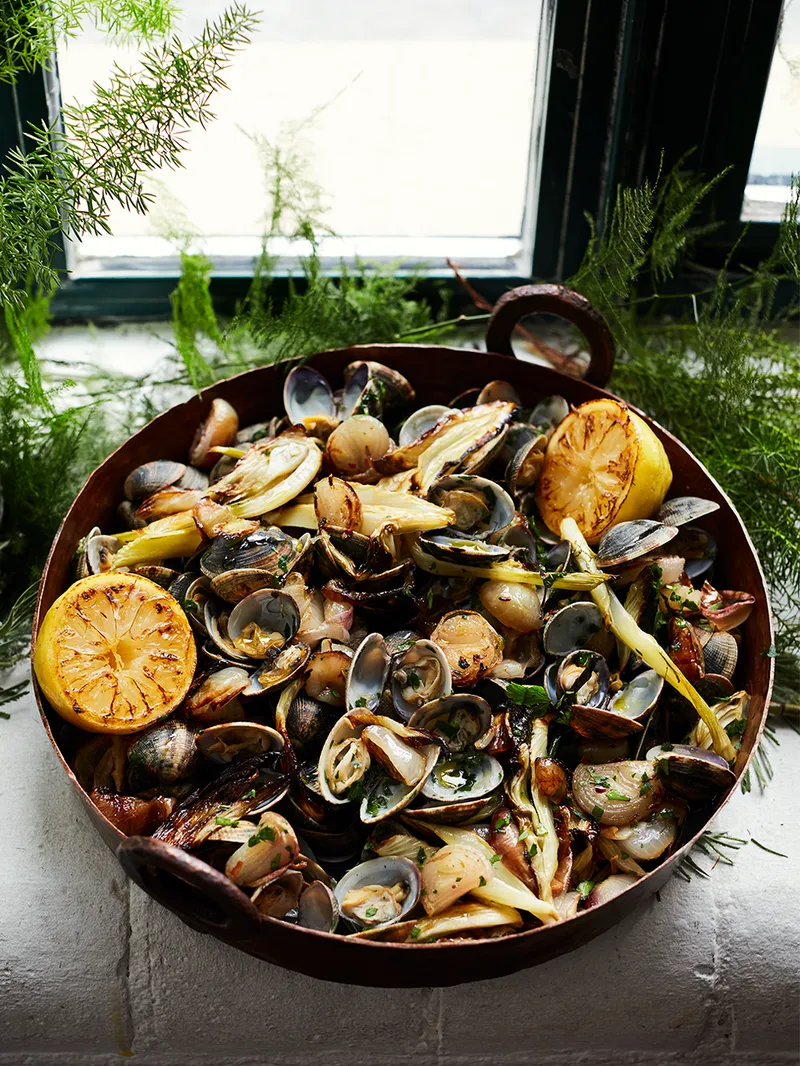 Since flying to Venice for dinner isn’t possible for most of us, this magical meal is easy to, if not replicate, at least approximate. I say that because I’m pretty sure you won’t be able to find the famous Venetian gray brine shrimp stateside. These shrimp are seriously tiny and sweet. But we all have access to great shrimp from our fishmongers. For this shrimp and polenta recipe, all you need to do is make a batch of polenta, which isn’t hard at all; it just requires some stirring. And while the polenta simmers away, cook some garlic with white wine and stock, add the shrimp, and cook for about four minutes before swirling in some butter and steaming the shrimp to completion.